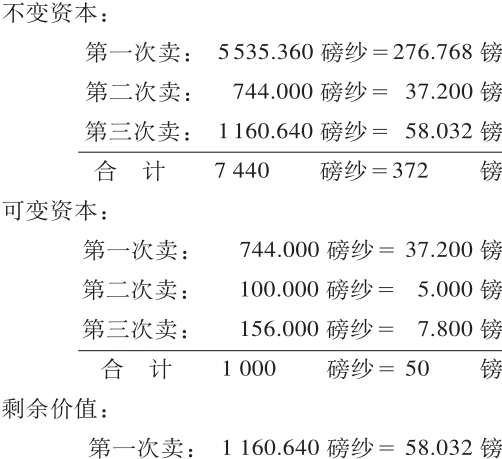 把上述三部分出售的结果加起来,就和一次把10 000磅纱卖掉的结果一样。