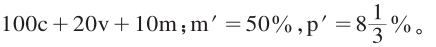 160c+40v+20m;C=200,m′= 50%,p′=10%