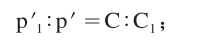 因为以同数乘除分子和分母,分数的值不变,所以我们可以把v/C和v1/C1化为百分比,也就是,使C和C1各=100。这样,我们就得到v/C = v/100 和v1/C1= v1/100 ,我们还可以把上述比例中的分母去掉,于是就得到: p′∶p′1=v∶v1;也就是说,