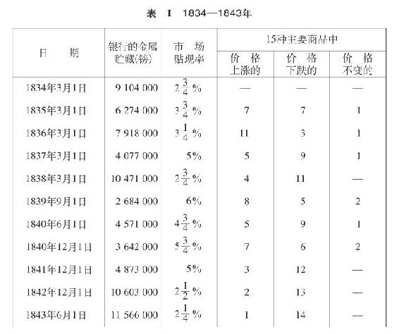 “如同1834—1843年的10年中一样,在1844—1853年,银行存金的变动,每次都伴有在贴现上贷出的货币的借贷价值的增加或减少;而另一方面,国内商品价格的变动则表明,它和英格兰银行存金的变动所显示出来的通货量完全无关。”(《银行法报告》,1857年第2部分第290、291页)