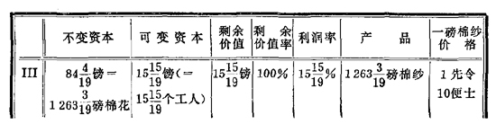 85 在紧接着的下一段,马克思自己就认为这种计算法是“不能成立的”,在作这种计算时,马克思的出发点是:纺纱的新加劳动等于40镑,并且只限于按照必要工资提高1/3的假定,把这40镑分为必要劳动和剩余劳动。计算之所不能成立,是因为在这种情况下(在资本为100镑的情况下),以前的工人人数(20人)和他们新加的劳动的数额(40镑)不可能保持不变。既然必要工资按照假定提高了1/3,100镑资本就不可能雇用20个工人,而必须把工人人数减为18+(3/4)人,就象马克思在后来的计算中所做的那样。而工人人数的变化会引起第Ⅱ种情况的计算中的一切其它变化。这种计算法如下:如果以前一个工人花费1镑,那末现在他花费1+(1/3)镑,20个工人现在花费26+(2/3)镑。因此,为了在原有的规模上继续进行棉纱的生产,就需有106+(2/3)镑的资本,其构成为80c+[26+(2/3)]v。折算成100镑,资本的构成就是75c+25v。——第320页。