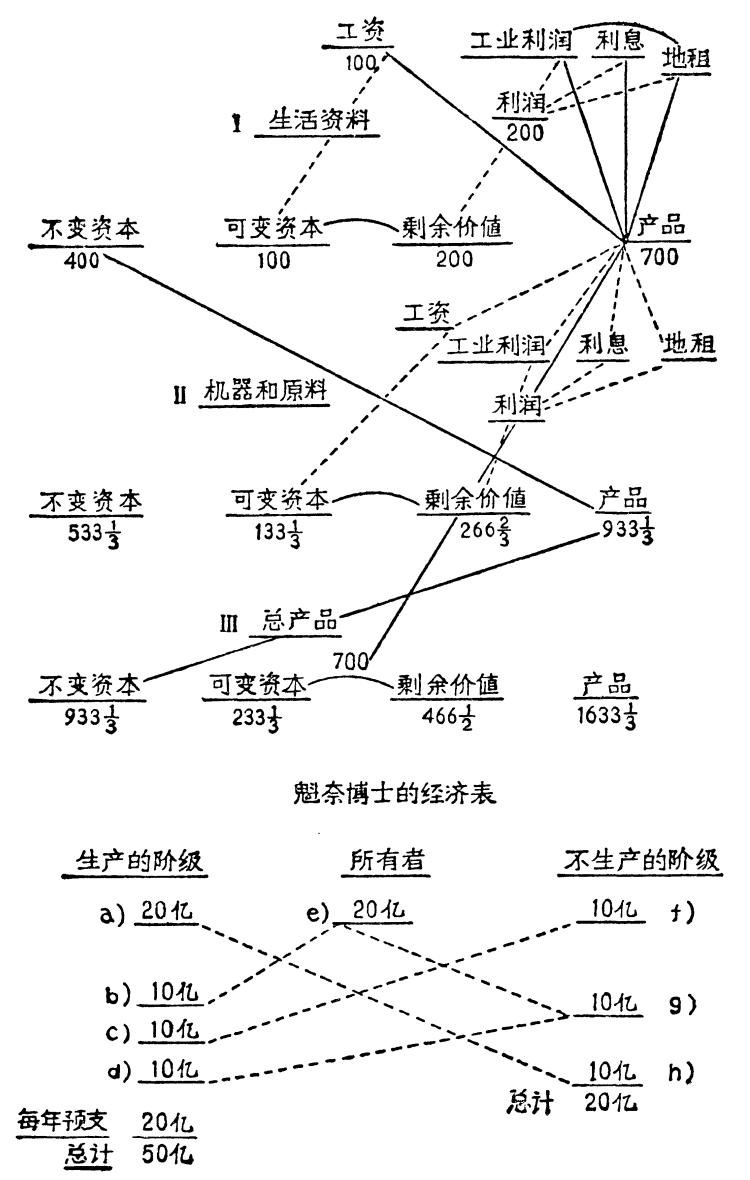 附上一份“经济表”,这是我用来代替魁奈的表342的,天气很热,但是你如果有可能,就仔细看一看,如有意见就告诉我。这个表包括全部再生产过程。